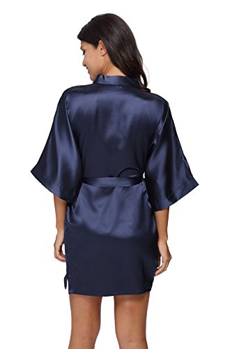 The Bund Women's Pure Colour Short Kimono Robes with Oblique V-Neck, Large, Dark Blue