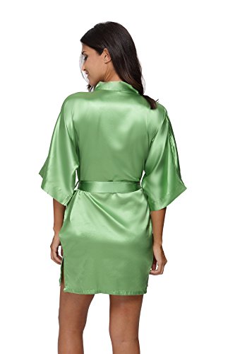 The Bund womens Pure Colour Short Kimono Robes with Oblique V-Neck Green Medium
