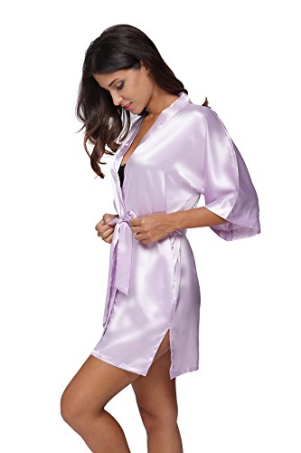 The Bund Women's Pure Colour Short Kimono Robes with Oblique V-Neck, Large, Light Purple