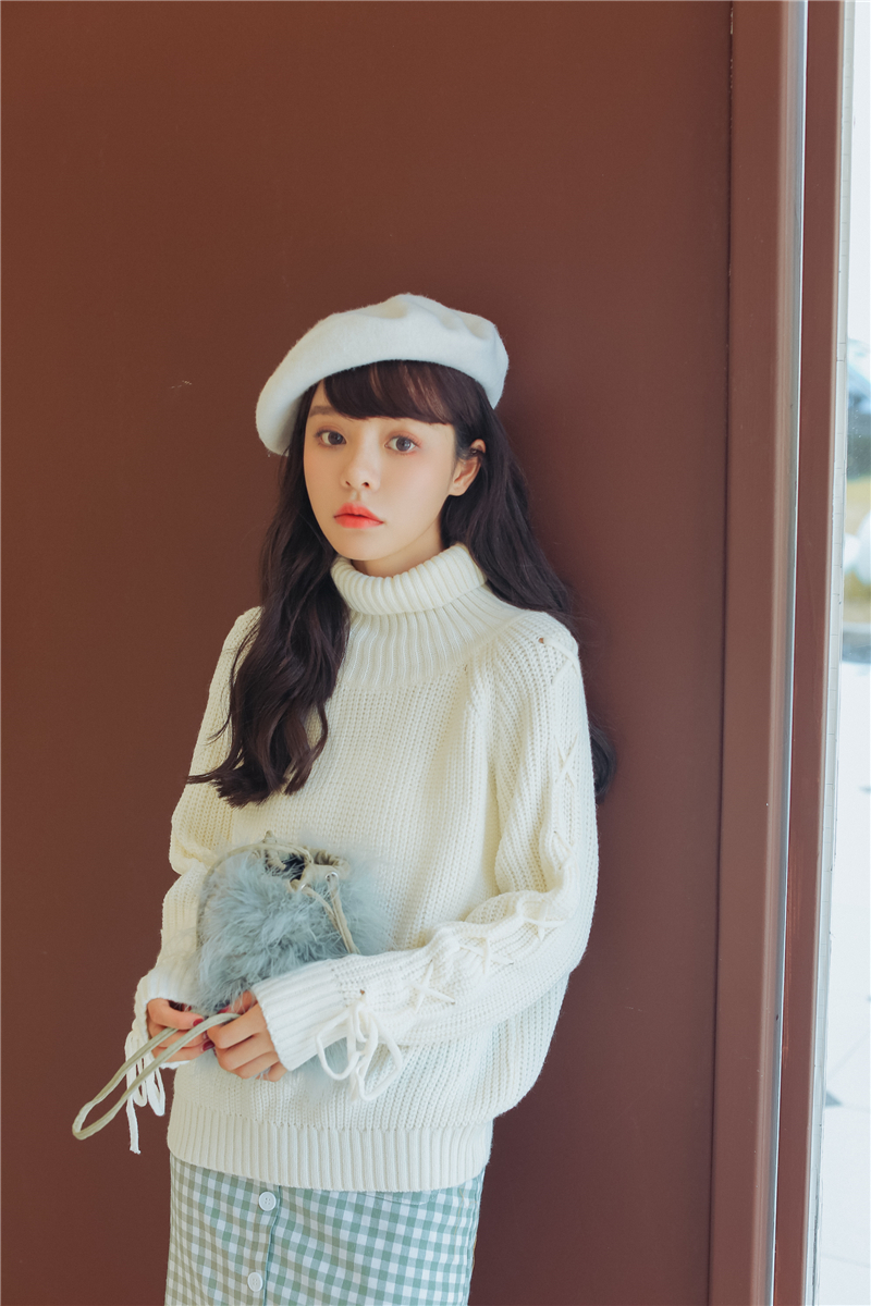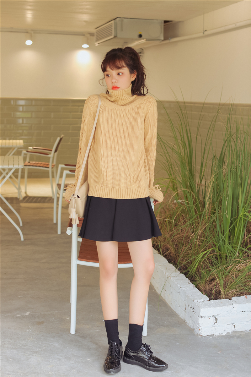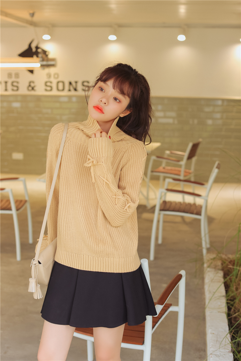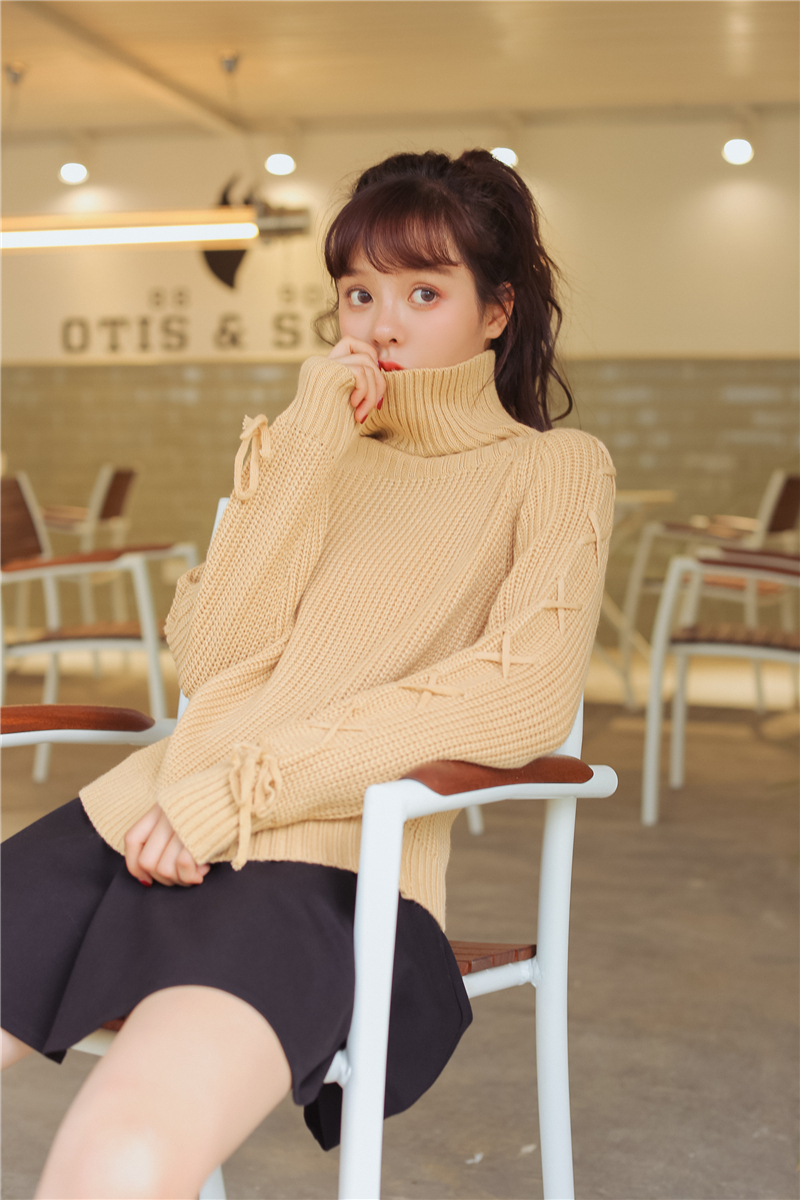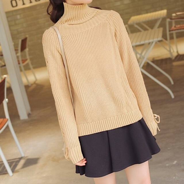 女性らしく上品で清楚な雰囲気のタートルネックニットセーターです。