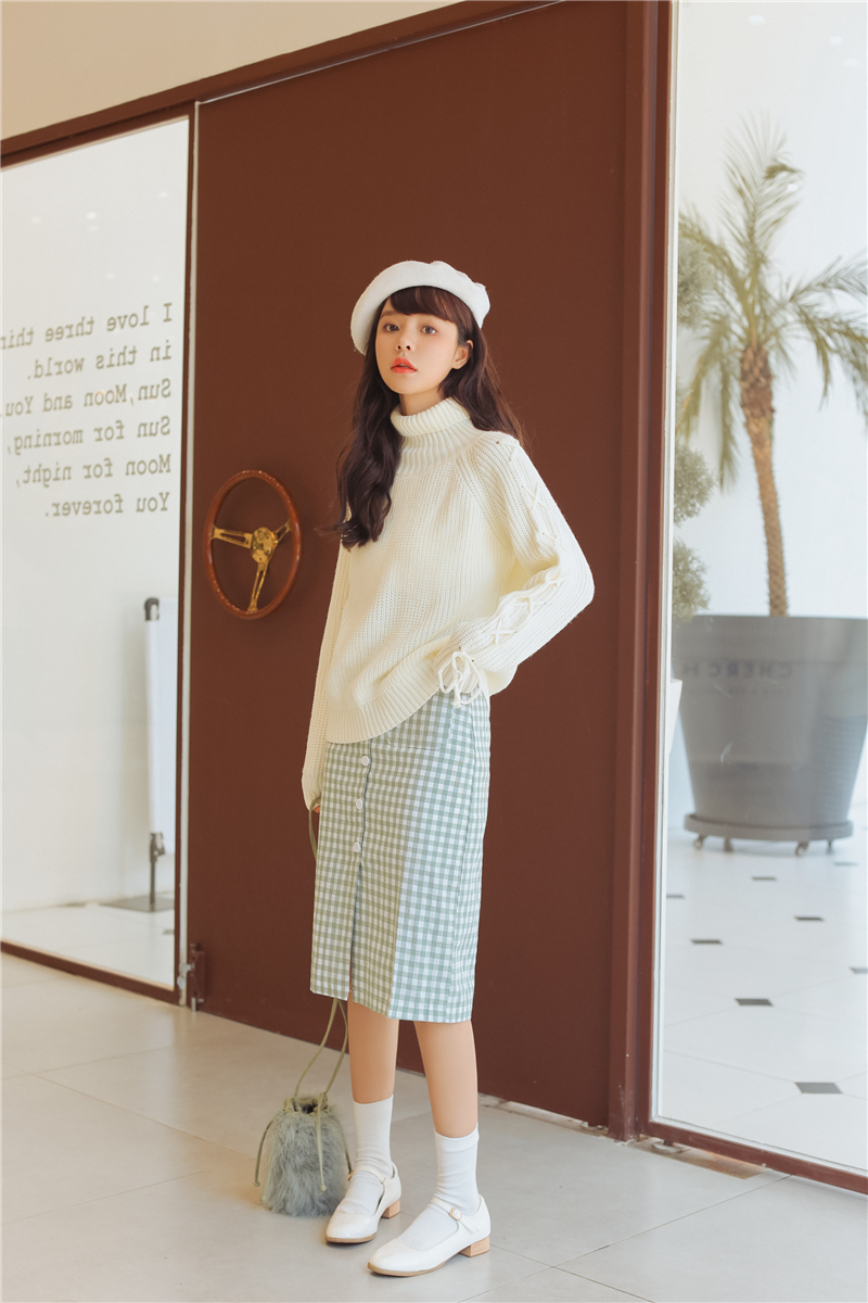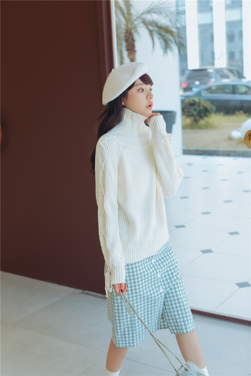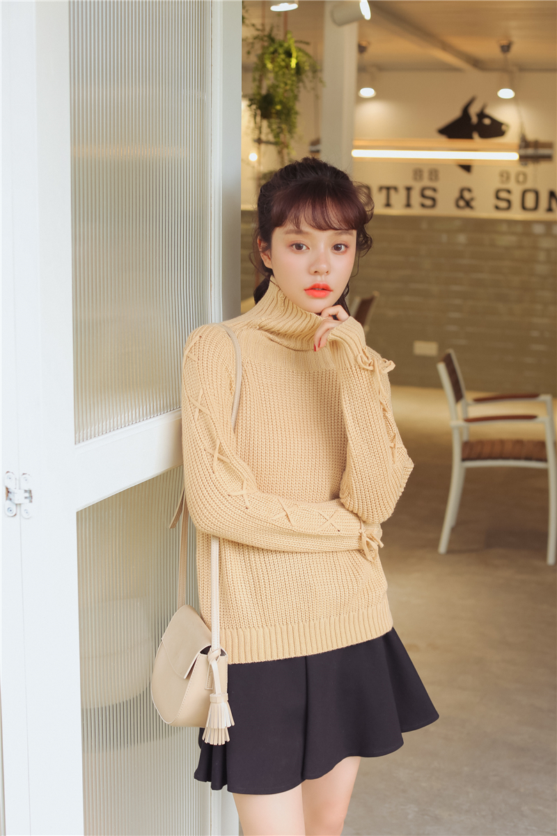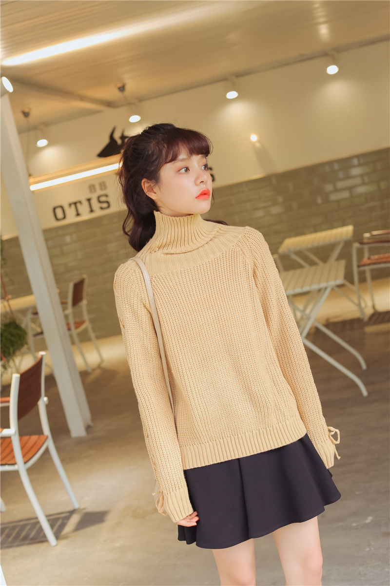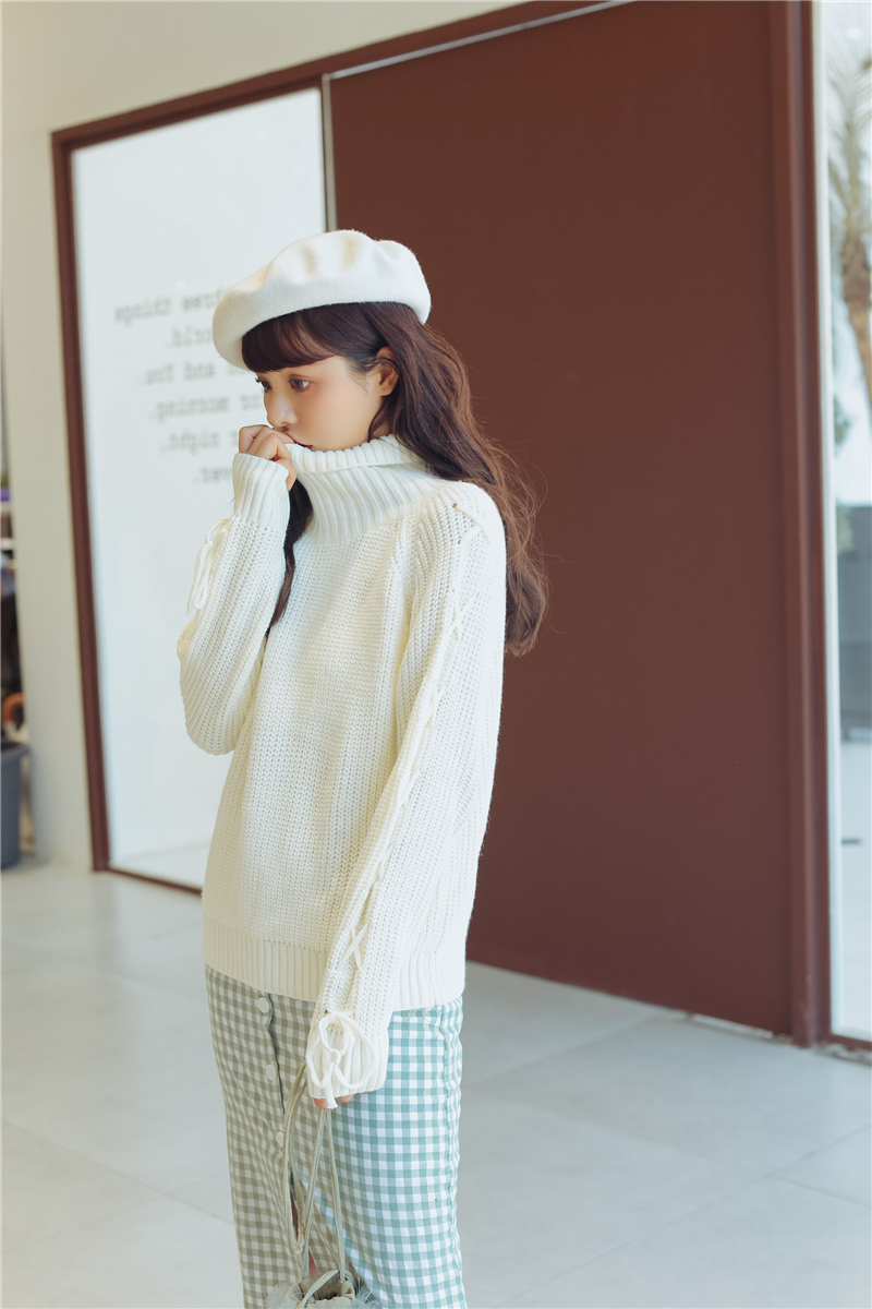 女性らしく上品で清楚な雰囲気のタートルネックニットセーターです。