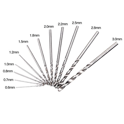 Twist drill bits set: package includes 1 piece hand drill, 12 pieces drill bits 0.6/ 0.7/ 0.8/ 1.0/ 1.2/ 1.5/ 1.8/ 2.0/ 2.2/ 2.5/ 2.8/ 3.0 mm