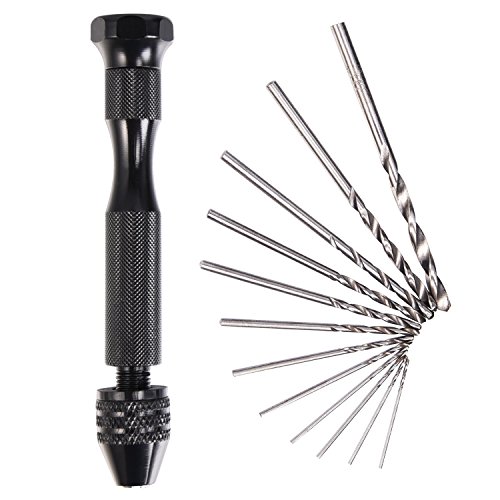 eBoot 12 Pieces Twist Drill Bits Precision Pin Vise Woodworking Hand Drill for Model Jewelry Walnut Amber Beeswax Olive Nut