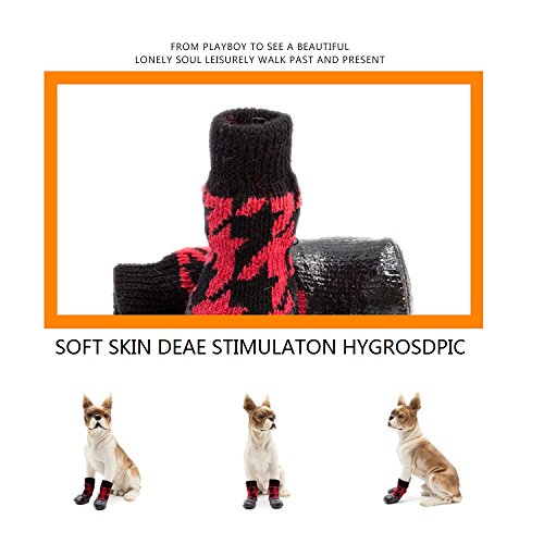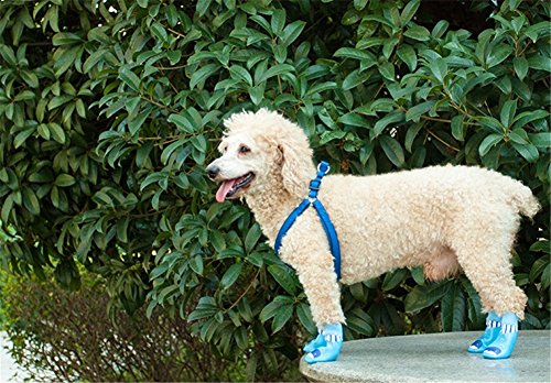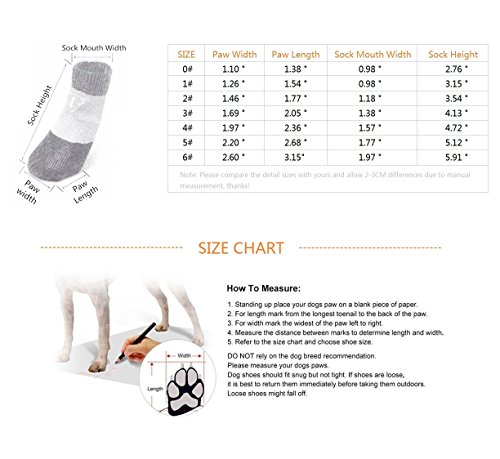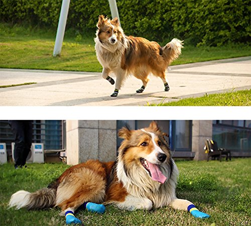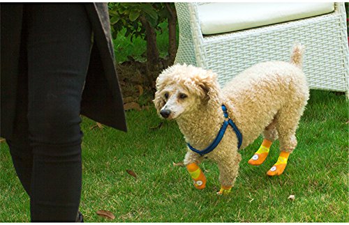 -. Feature : HIGH QUALITYENVIRONMENTAL RUBBER : Waterproof, Prevent wet, insulation or prevent bacteria, your pet will feel comfortable / WILL NOT FALL OFF : Socks mouth cotton ,loose tight design,good elasticity, Can be firmly worn on the dog's foot, / NON-SLIP ADAPT TO ANY FLOOR : Improve your dog's traction on slippery surfaces. Anti-slip coating maximizes grip and protects paws / EASY TO WEAR AND CLEAN : Dog rain snow boots, can keep your pet's feet very clean.Keep your home clean when it is raining or snow. / * BUY ONE GET ONE FREE : Your gift is ( Pet Bracers 4 Pcs ) Bracers have a powerful function, Protect your pet's wrist. Bracers, Keep warm, fashion, It is a noble ornament. with elastic Suitable for all pets Wear(Random Color)