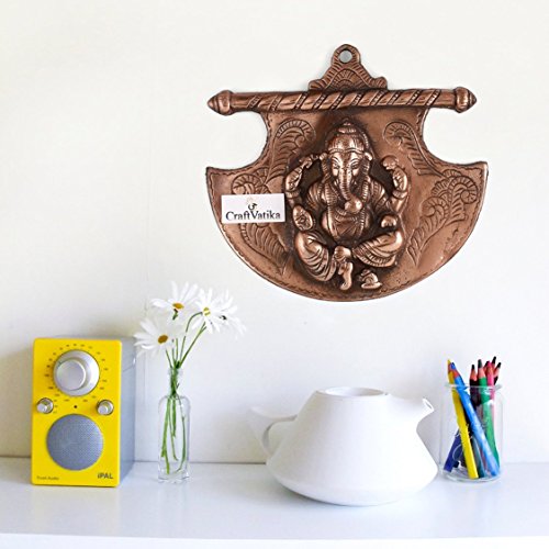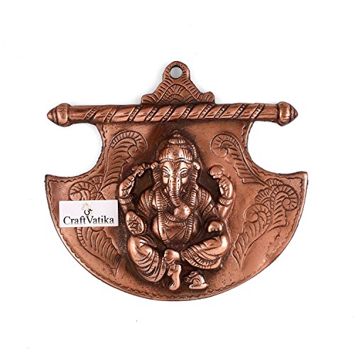 CraftVatika God Ganesh On Axe Wall Hanging | Hindu Lord Ganesha Handmade Metal Home Decor Wall Art