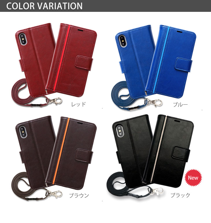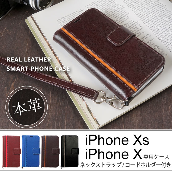 Hy+ iPhone X iPhone Xs 本革レザー ケース 手帳型 (ネックストラップ、カードポケット、スタンド機能付き)
