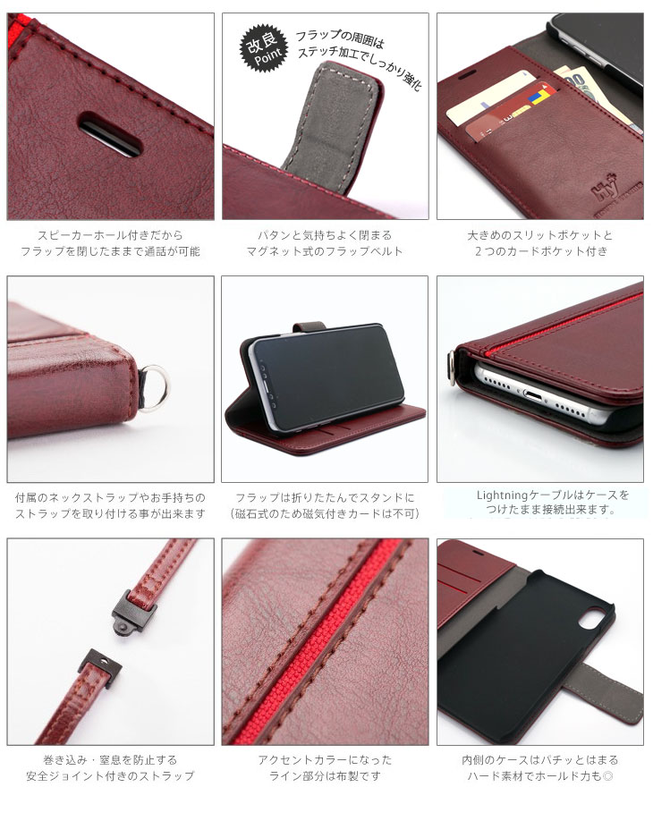 【商品名】Hy+ iPhone X iPhone Xs 本革レザー ケース 手帳型 (ネックストラップ、カードポケット、スタンド機能付き)
