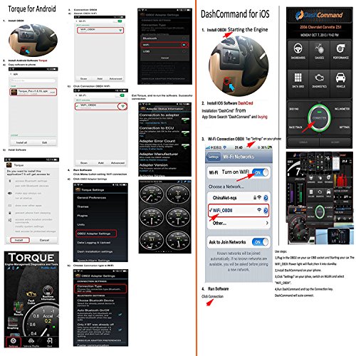 -. Feature : Any issues, our professional team resolve it within 4 hours.Works with vehicles made in the USA after 1996. 12 months product warranty, 30 days product Replacement or Full Refund if you are not satisfied. / Support OBD-II protocols: ISO15765-4 (CAN), ISO14230-4 (KWP2000), ISO9141-2, J1850 VPW, J1850 PWM. For your vehicle to be OBD II compliant it must have a 16-pin DLC (Data Link Connector) under the dash and the Vehicle Emission Control Information Label must state that the vehicle is OBD II compliant / Display current sensor data, including Engine RPM, Calculated Load Value, Coolant Temperature, Fuel System Status, Vehicle Speed, Short Term Fuel Trim, Long Term Fuel Trim, Intake Manifold Pressure, Timing lights, Timing advance, Intake Air Temperature, Air Flow Rate, Absolute Throttle Position, Oxygen sensor voltages/associated short term fuel trims, Fuel System status, Fuel Pressure / Compatible for Chrysler Ford Honda Mazda Nissan Toyota VW & More OBDII Cars. Super Mini OBD2 OBDII Wireless Auto Check Timing Car Diagnostic Interface Scanner, Read trouble codes, both generic and manufacturer-specific / Connects to your Android and iOS phone/tablet or Windows PC using a 4th party app.-- "Torque Pro" App for Android device."OBD Car Doctor "or "DashCmd($9.9)" APP for iOS system from Apple store.