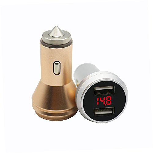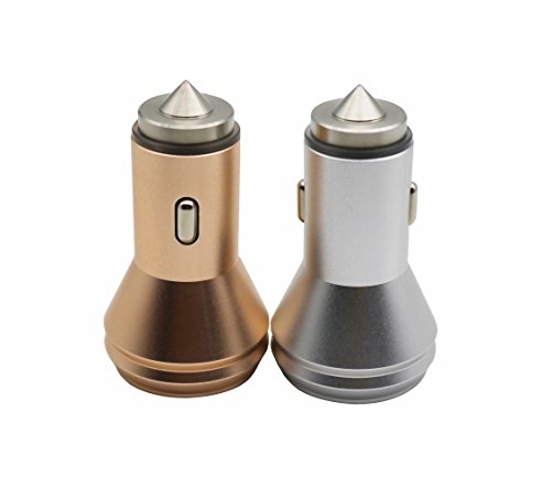 USB Car Charger,Fast and Safe Charger for Smartphones with Emergency Hammer and LED light(Gold)