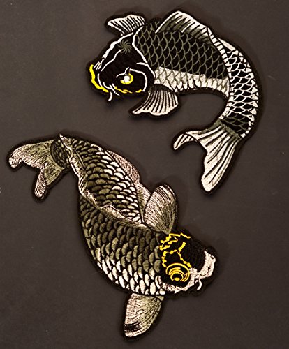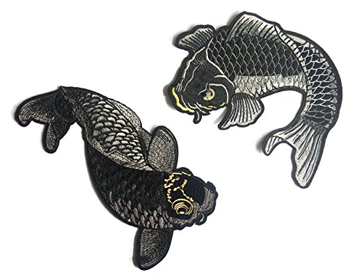 Fish Embroidered Patches Applique or Iron on Patches Embroidered Garment DIY Accessory (Two Black-white Fish, Blackwhite)