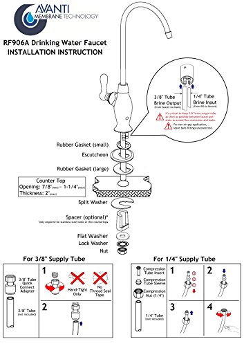 Avanti Designer Kitchen Bar Sink Reverse Osmosis RO Filtration Drinking Water Faucet for 3/8" supply tube - NSF certified, built-in Air Gap, ceramic disk, lead-free - RF906A-06BN Brushed Nickel