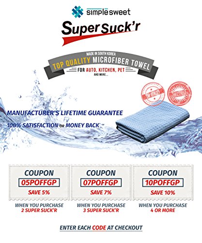 Would you like to get a microfiber that actually dries stuff and save money on replacing worthless cheapo over and over? Then Scroll up, click on "Add to Cart", and be the next Super Suck'r owner. A lifetime money back guarantee! If you are not completely satisfied, full refund without exception!