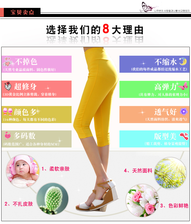 Stylish Tights Slim Cropped Pencil 9"Pants  DS0003 (2XL)