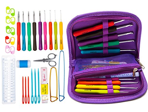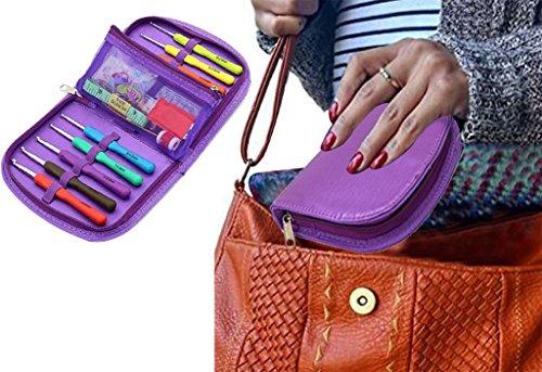Vivoice Crochet Hooks Set Ergonomic Crochet Hooks Knitting Needle Kit Zipper Organizer Case with 9pcs 2mm to 6mm Soft Grip Crochets ,Small Volume Complete Accessories and Easy to Carry (purple)