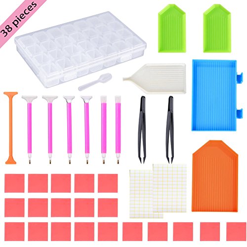 Diamond Painting Tools,5D Diamond Painting Accessories with Diamond Embroidery Box,DIY Diamond Painting Cross Stitch Kits for Adults or Kids(38 Pieces)