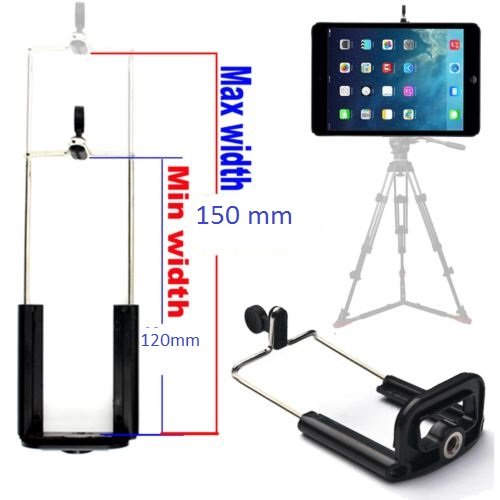-. Feature : Tripod+Tablet Holder Total Height: 210mm(min)-300mm(max) / Tripod+Tablet Holder with standard 1/4 inch screw / Bluetooth shutter Communication distance: 10m(30ft) / Tablet holder can fit 7.5-8 inches screen tablet / 1x tripod, 1x tablet holder, 1x bluetooth shutter