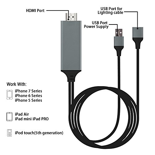 HDMI Adapter Cable,ChYu 3.5ft MHL to HDMI Adapter Cable 1080P HDTV Adapter Plug and Play No need Wifi for IPhone 5 5S 6 6S Plus 7 Plus iPad iPod Samsung Type C to Mirror on TV Projector(Black+Gray)