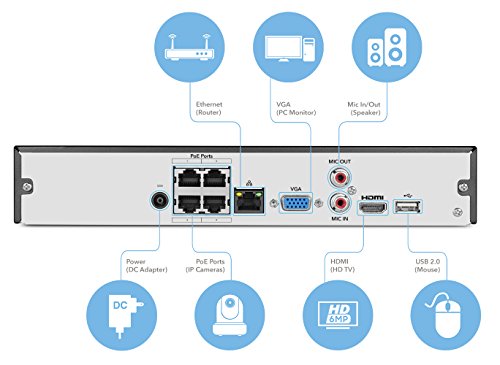 Amcrest NV2104E 1080p POE NVR (4CH 1080p/3MP/4MP/5MP/6MP) Network Video Recorder - Supports up to 4 x 1080p (2.1MP) POE IP Cameras @ 30fps Realtime, Supports up to 6TB HDD (Not Included) and More