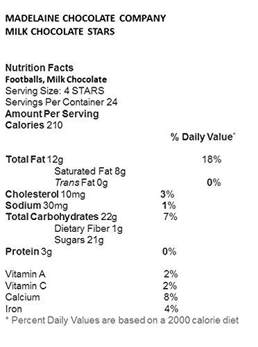 -. Feature : Bulk Chocolate Gold Stars Made Finest Premium Milk Chocolate / Two Dimensional, Solid Chocolate, Wrapped Elegant Gold Foils / Approx 22 - 24 Pcs Per 1/2 Lb, Add'l Poundage Combined / Chocolate Star Size: 1 1/2" x 1 1/2" x 1/2" / Made USA. OUD Kosher.
