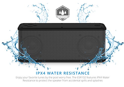 -. Binding : Electronics -. Brand : Ematic -. EAN : 0817707018036 -. Feature : 30+ feet range depending on environment / Answer calls and functions as a speakerphone / Enjoy movies and games from your laptop, tablet, or smartphone loud and clear / Line-in for use with devices without Bluetooth. / Built-in rechargeable battery. -. Label : Ematic -. Manufacturer : Ematic -. Model : ESR102 -. MPN : ESR102 -. PackageQuantity : 1 -. PartNumber : ESR102 -. ProductGroup : CE -. ProductTypeName : PORTABLE_AUDIO -. Publisher : Ematic -. Studio : Ematic -. Title : Ematic ESR102 RedLife Water Resistant Bluetooth Speaker & Portable Charger for iPhone, iPad, Android & more -. UPC : 817707018036