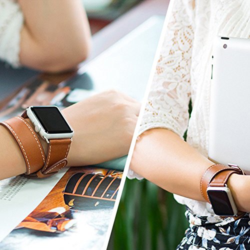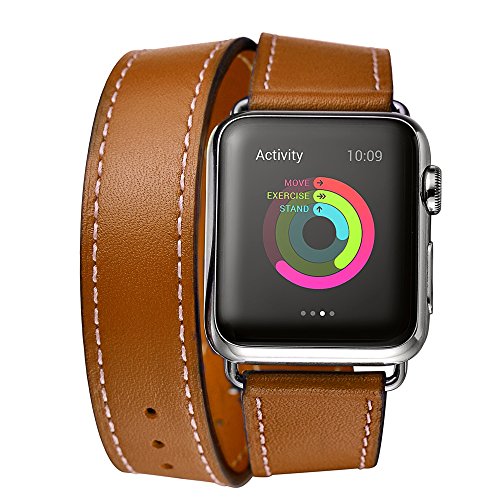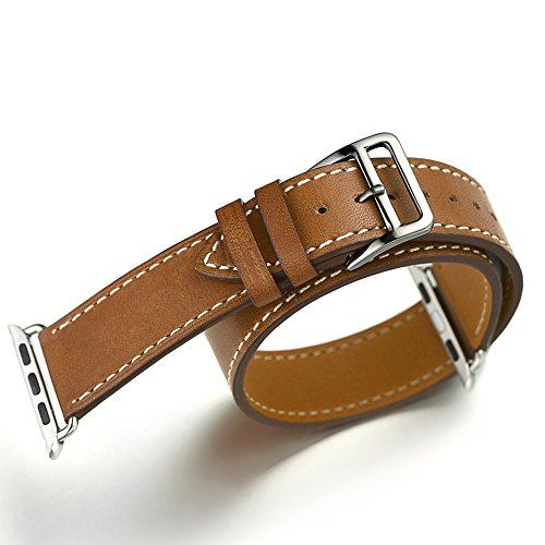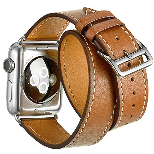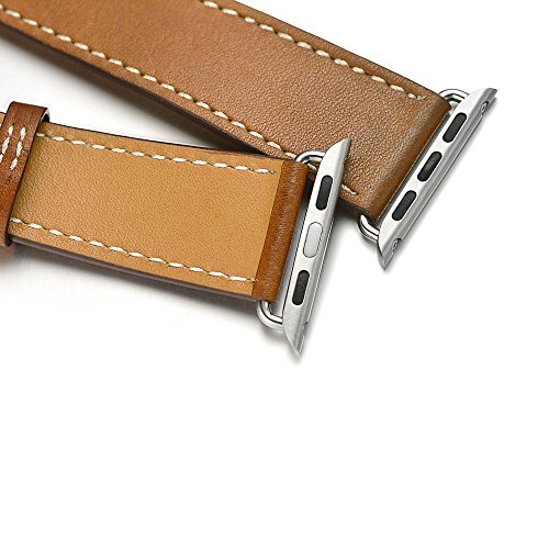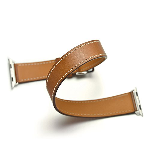 Valkit Leather Double Tour Apple Watch Band with Adapter Clasp, 38mm, Brown
