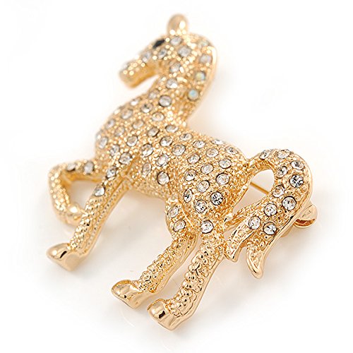 -. Title : Small Clear Crystal Horse Brooch In Gold Tone Metal - 38mm