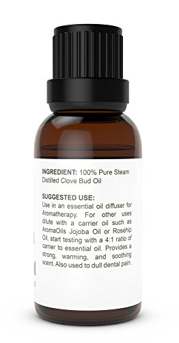 - Title : Clove Bud Essential Oil by AromaOils - 1 oz (30 ml) - 100% Pure Therapeutic Scented Oil - Best for Toothache Pain Relief, Aromatherapy, and as a Natural Antiseptic