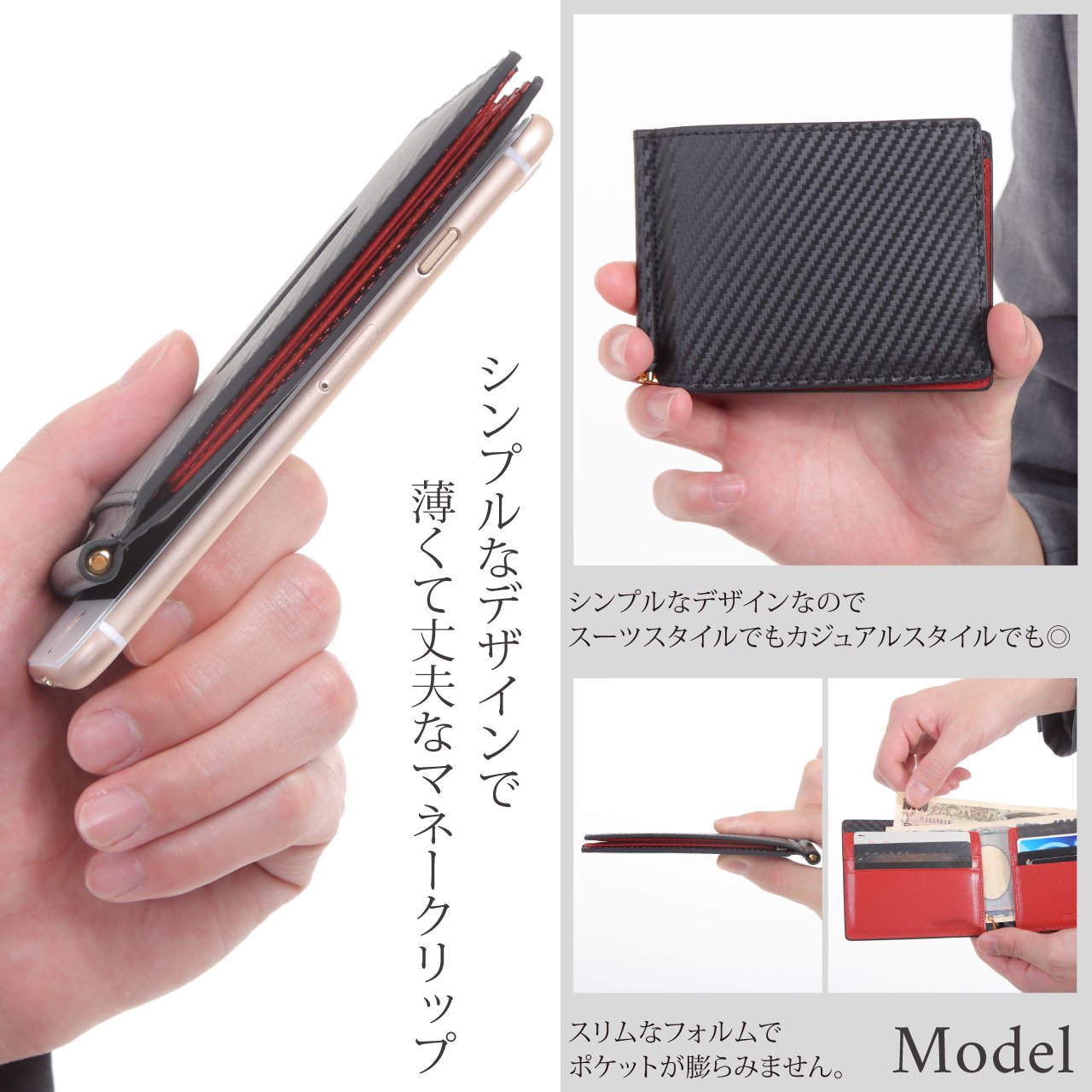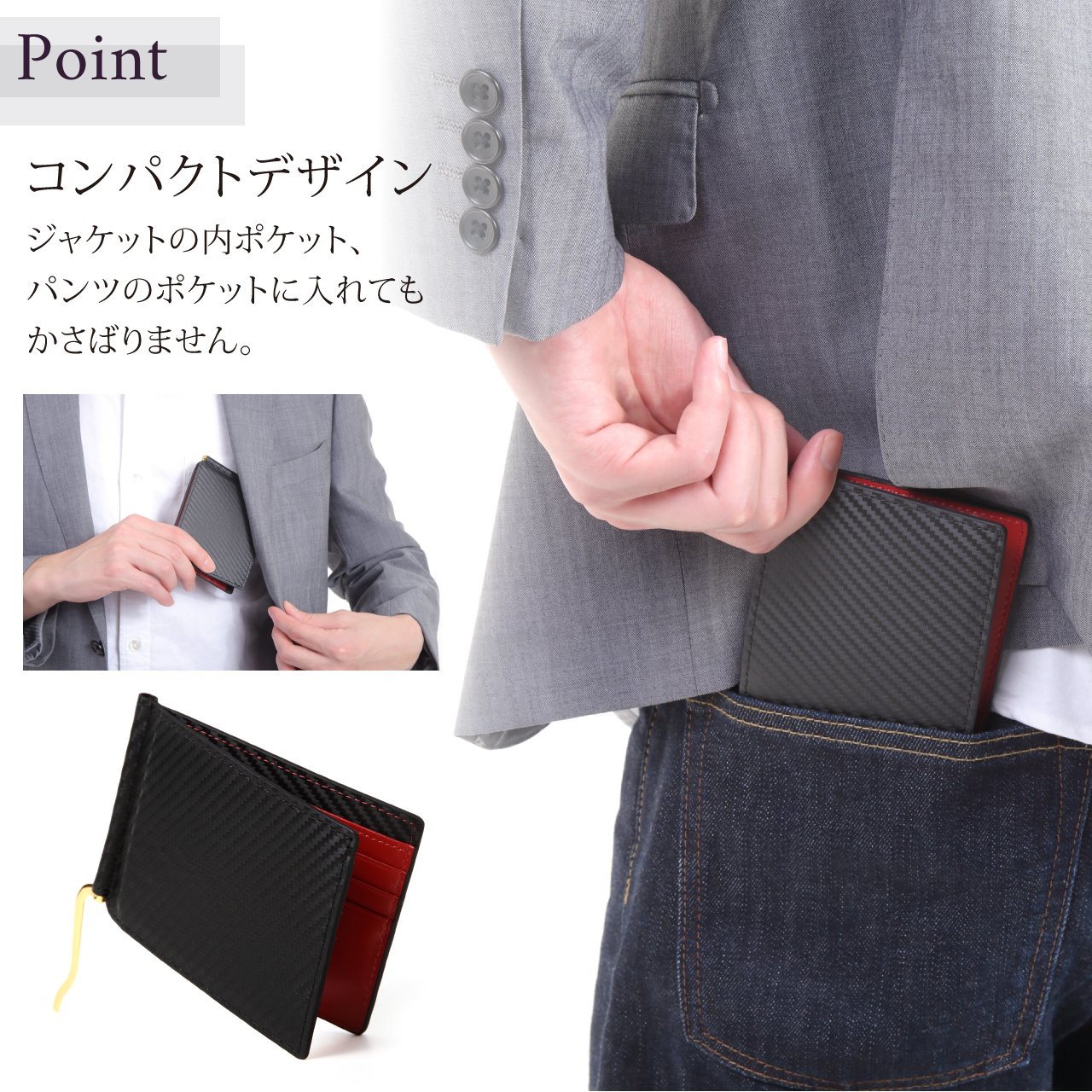 Thin about 8 mm thick can be used in a style that does not bulk even if it is stored in the pocket.
