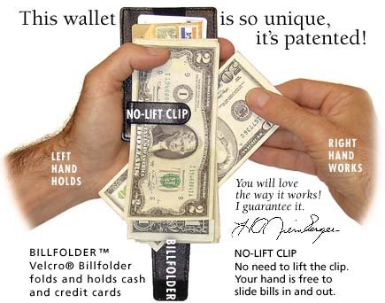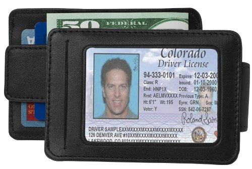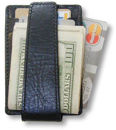 -. Binding : Apparel -. Brand : DeepPocket -. Color : Black Top Grain Cowhide -. Department : mens -. EAN : 0619303010519 -. Feature : NEW spring steel no-lift clip holds up to 20 bills and keeps one hand free to slide bills in and out / Two slots hold up to 5 or 6 credit cards / Side pocket with Velcro closure holds business cards / Strap with Velcro closure folds to cover and secure money and cards / SeeID window for ID card -. PackageQuantity : 1 -. ProductGroup : Apparel -. ProductTypeName : ACCESSORY -. Size : 4.5"x3.5"x.75" -. Title : SG-105 DeepPocket Leather Money Clip Wallet, Top Grain Cowhide with SeeId -. UPC : 619303010519