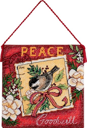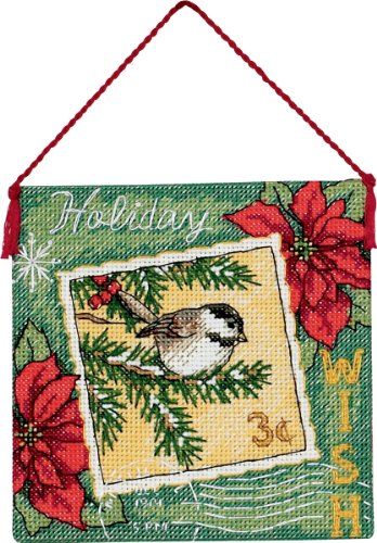 This unique postage theme ornament featuring a goldfinch, holly leaves, poinsettias and holiday sentiments is overflowing with elegance. Stitch our counted cross stitch Joy Ornament to display in your home or as a gift for someone on your Christmas list. Kit contains pre-sorted cotton thread, 18-count ivory cotton Aida, felt, needle and instructions. Finished Size: 4-1/4-Inch by 4-1/4-Inch.Feature