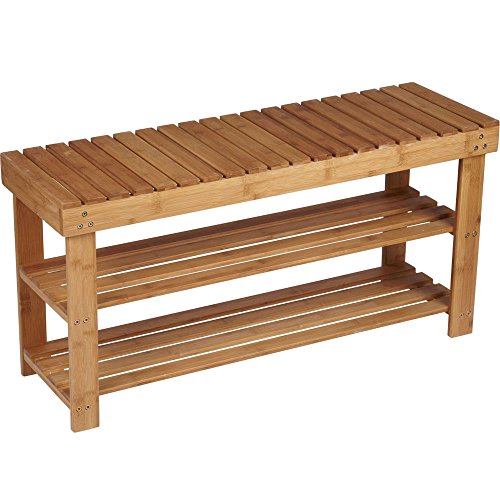 -. Title : Household Essentials Bamboo 2-Shelf Storage Bench Seat, Natural