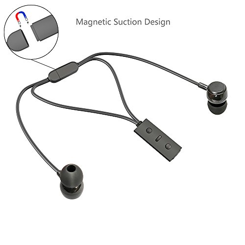 -. Feature : Special design:ear piece ergonomic angle is designed to contour to your ear shape which will allow you to enjoy the real music element and nice fit to your ear canal. / Earbuds are designed according to necklace with fashion look in any cloths;With magnets to easy wear. / Light weight intelligent magnet at earplugs end to make the whole wireless headphones as a circle, hang like a necklace around your neck.The built-in magnet attracts the earplugs when you don't need them, greatly decreasing the burden on ears and giving you a convenient storage way to carry around. / Long battery life allows the headphones to play up to6-8 hours of continuous music at a time or 200hours of standby time. / Bluetooth earbuds work for iPhone,android,all cellphones,tablets and music players.Latest Bluetooth 4.2 technology; easy and fast pairing with smartphones,tablets and other Bluetooth enabled music devices;High quality process provides pure, CD-like sound for compatible devices.