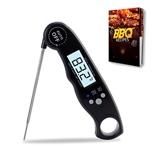 Digital Meat Thermometer Instant Read Thermometer Waterproof Collapsible Probe Backlight Function for Steak Barbecue Grill Smoker Cooking BONUS BBQ Ebook