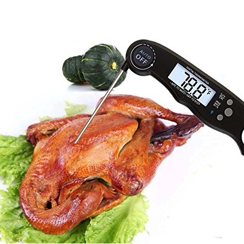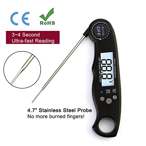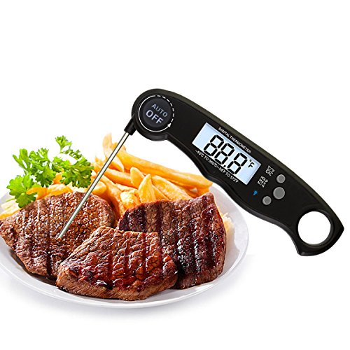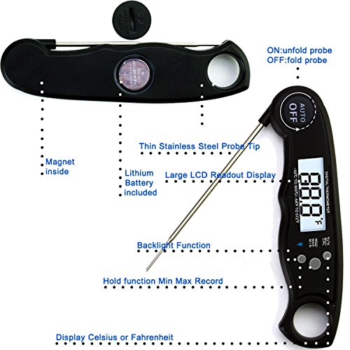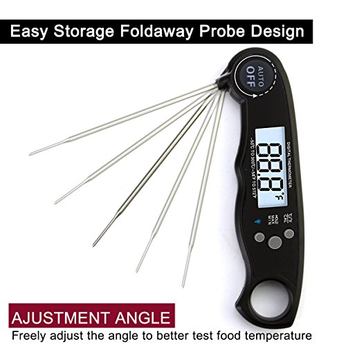 - ★EASY TO USE: Unfold probe,point and poke into meat,get accurate food temperature readout on large LCD screen.Fold up probe,then it turns off automatically