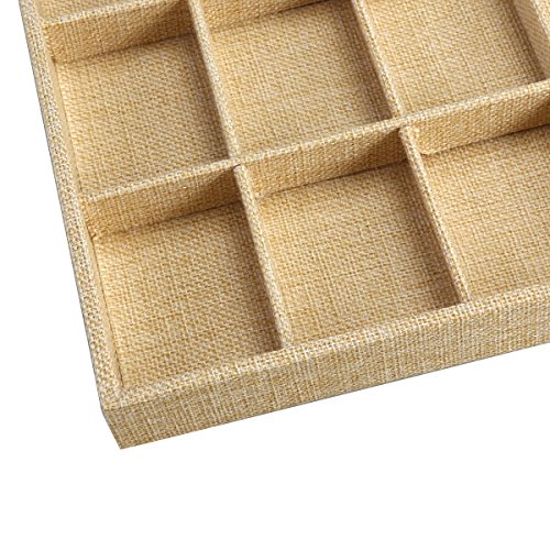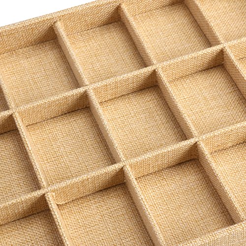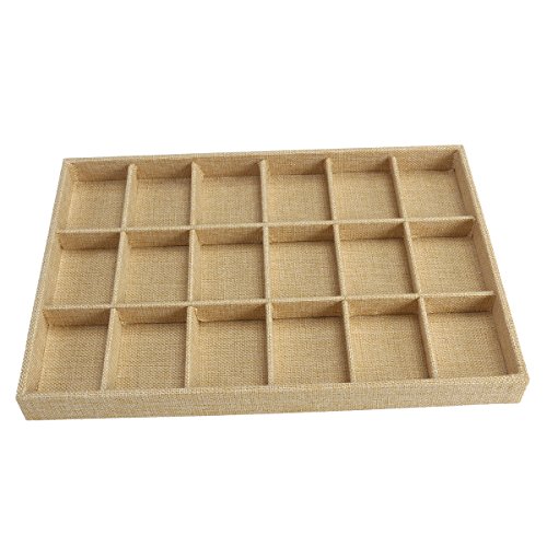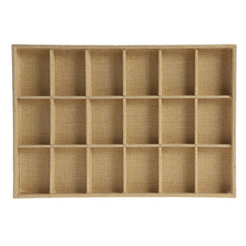 -. Feature : MATERIAL- Linen.OVERALL DIMENSIONS - 13.7 8* 9.45 inch (L * W) / 18 UNIQUE COMPARTMENTS - The removable dividers separate the jewelry tray into 24 equal sectional compartments.18 grids keep all types of jewelry separate, organized and neatly displayed. / STACKABLE DESIGN - The jewelry tray can be stacked on your drawer or dresser to save space and to accommodate your growing collection. / FUNCTIONAL DESIGN - The sleek jewelry tray can be used to store earrings, necklace, bracelet, rings, watch and more. It helps to find you jewelry instantly and put your look together quickly. / BUSINESS AND PERSONAL USE - Best for displaying jewelry rings whatever in a shop or on your dressing table. Ideal for home jewelry decoration.