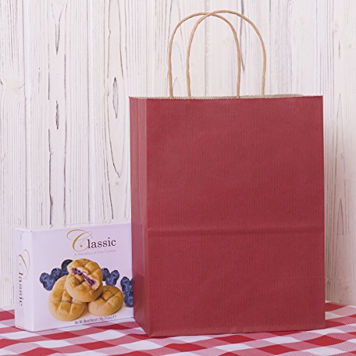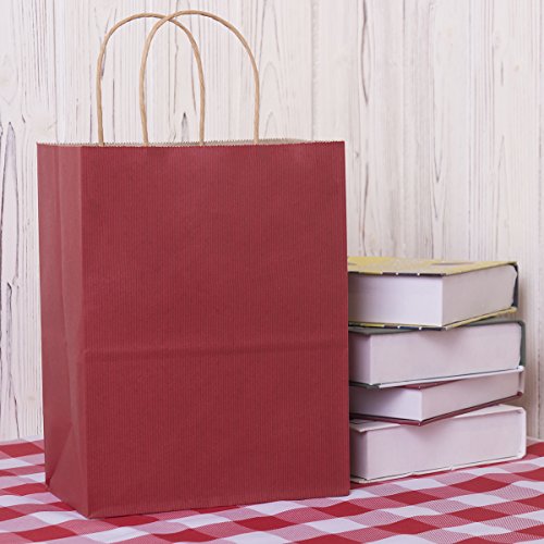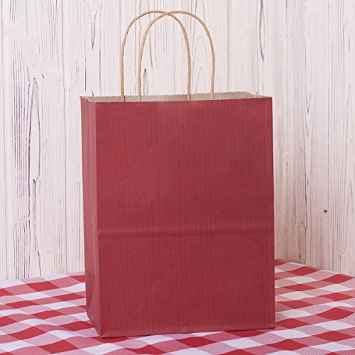 ?Our kraft shopping bags are glossy paper which make them a little more elegant looking than the plastic which tend to tear easily. ?The retail paper bags are perfect size and work beautifully for your business. At this price, they are nice to be able to place product in such an elegant handy bag for your customers. On the other hand, you could print your own labels/logo stamp and put them on each bag, made the shopping bags on behalf of your store. ?Besides, they are perfect for decorating. You could dress the Red bags up by using ribbon, markers, glitter and pompoms. It it a great way to let the children bring out their creative side that letting them sit color and draw on these bags. Different color will perfect for Easter, Christmas, Thanksgiving, baby shower, any patriotic holiday or birthday and etc. It is a really fun experience and created a lot of cute memories!