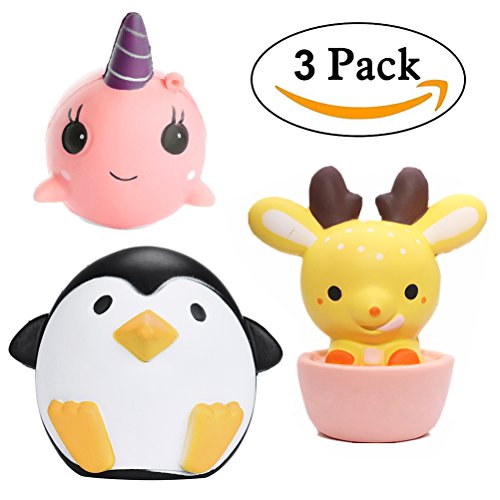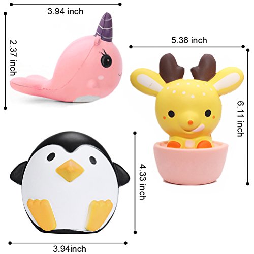 ❀Exceptional value: This mixed squishies Mega pack comes with a total of 3 Squishies! They are deer cup ,penguin and unicorn.
