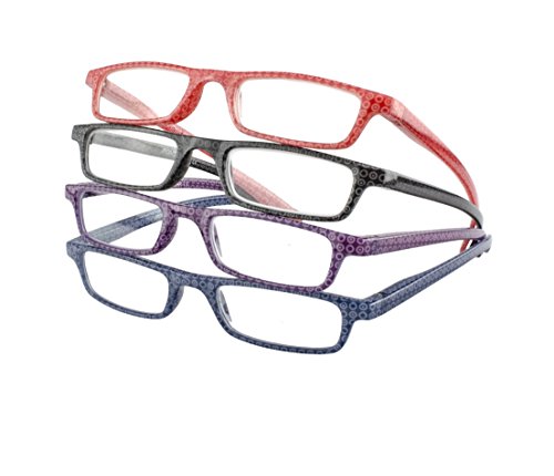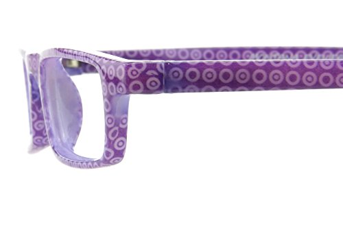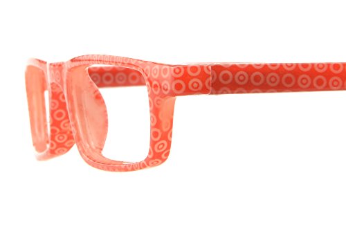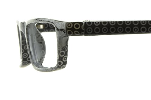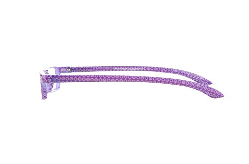 Diese Lesebrille hat ein frohliches Kreismuster auf der Fassung.