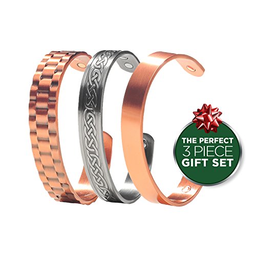 Elegant High Quality Copper Magnetic Bracelet Gift Set? This bracelet set is perfect for any loved one looking to help relieve pain from arthritis, RSI, carpal tunnel, migraines, fatigue and more. Whether your friend or family member ?lives a calm and relaxing life or a very active lifestyle, many people find copper bracelets help reduce some of their aches and pains as they grow older. The three varying styles and designs of these bracelets is perfect for everyone - reducing the guessing game of gifting.? Why Magnets Copper? This gift set is the perfect, stylish solution to pain management. Designed with pure copper and rare earth magnets, it combines powerful, natural, noninvasive healing and practicality effortlessly. Created with style and beauty in mind, these therapeutic bracelets will look gorgeous combined with all other accessories, in a stack of bangles, or as a standout, statement set. This thoughtful gift set will be sure to make your loved one feel special. The Perfect Gift? Our Copper Magnetic Therapy Bracelet Gift Set for Men, made with pure copper and strong rare earth magnets, comes in a luxurious velvet pouch making it the perfect gift for Father’s Day, Religious Holidays, Valentine’s Day, Birthday, Christmas, or any other holiday you need a thoughtful, unique gift for a loved one!? Bring happiness and healing to your family member or friend today with the Copper Magnetic Therapy Bracelet Gift Set for Men! 0 |