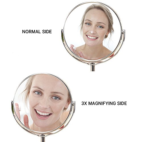 One side of the mirror is normal and the other side is 3x magnification which is ideal for makeup,shaving,cleaning your comedo and putting in contact lens