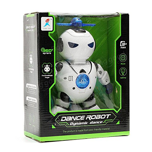 360° rotation dancing electric robot including light & music dancing electric robot model toy. This robot toy can dance, sing and give out light from its antenna turn on it, and then its antenna will give out light and rotate like a colorful circular. You can see a red circle on the ground when it is dancing. Its hands will flash lights and bobs, and it legs will also dance regularly. There is a built-in foundation on the dancing robot, which allows it to sit on the ground and rotate under its body with music that will play during the time of the dancing. This must be the best gift for the kids and the robot fans. Features:Item Type: Electronic toy. Warning: Keep away from fire. Gender: Unisex. Age Range: 3 years and up. Material: Plastic 1 X Kids Fun Electronic Music Light Dancing Robot.Feature