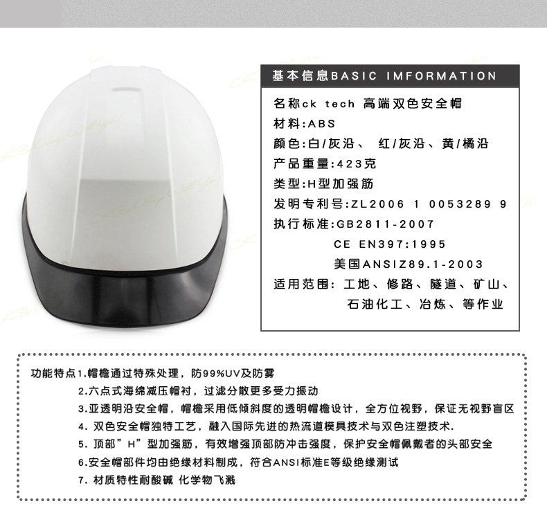 高端双色安全帽 防刺穿头盔领导工地施工夏安全帽ABS电力工程印字