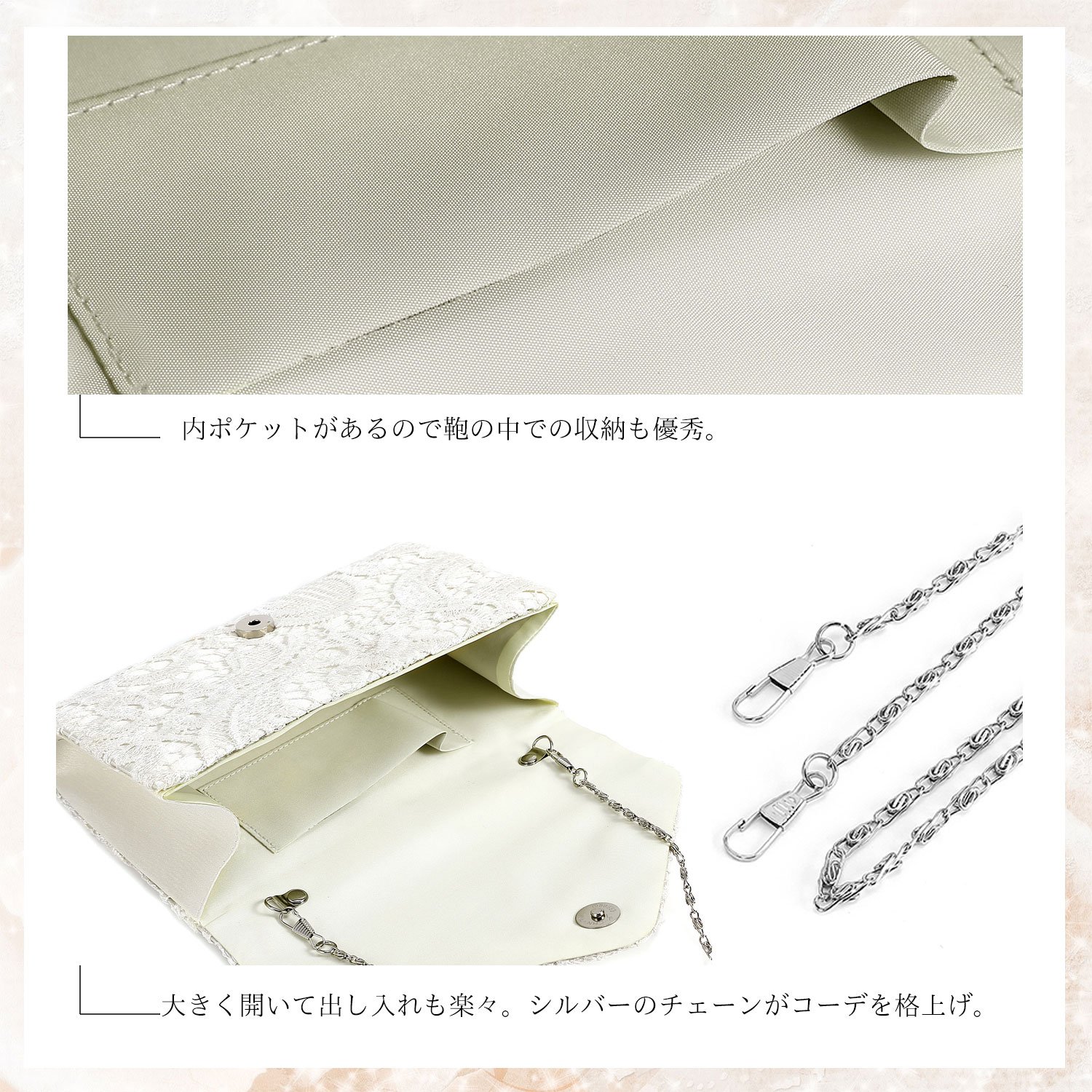 Since there is a place where the chain is hooked inside the bag, the chain can be easily detached from there.