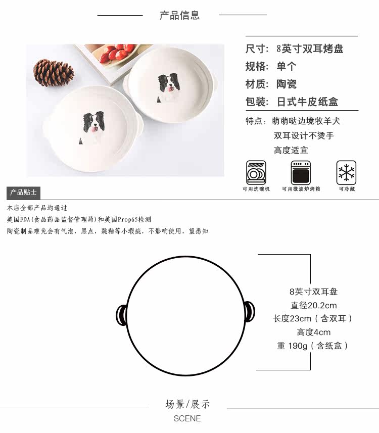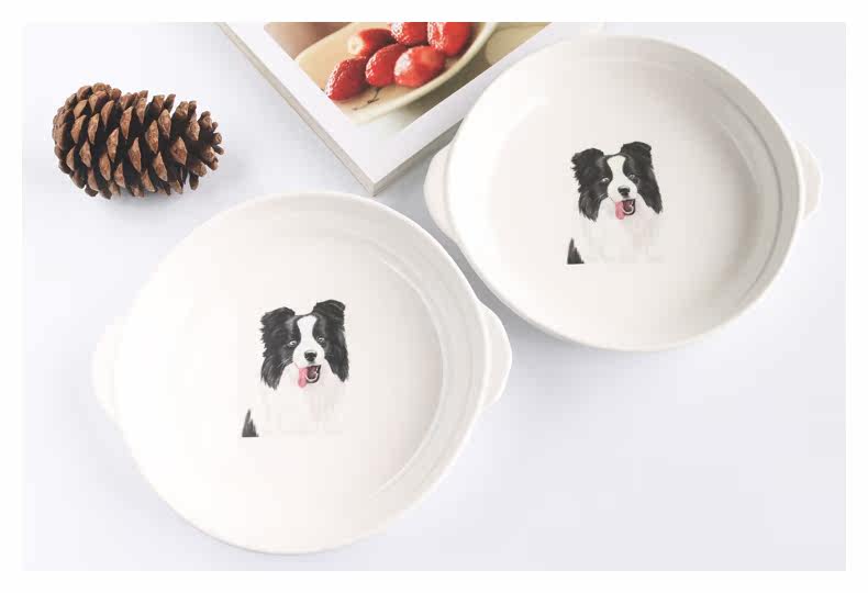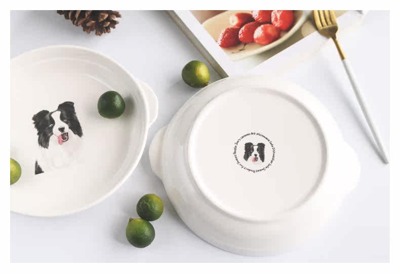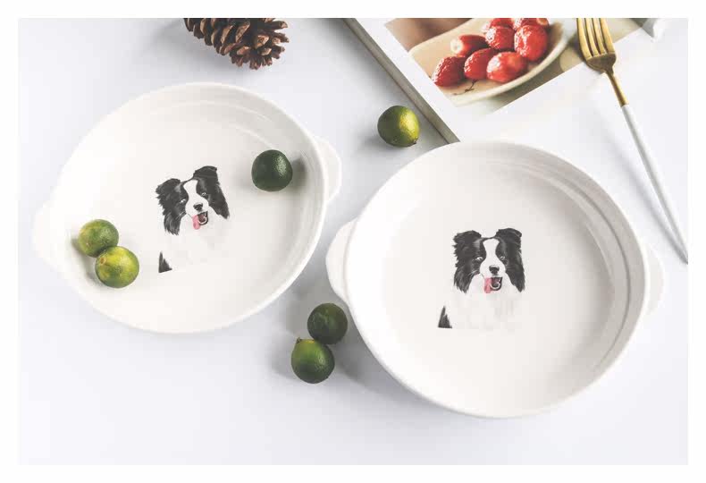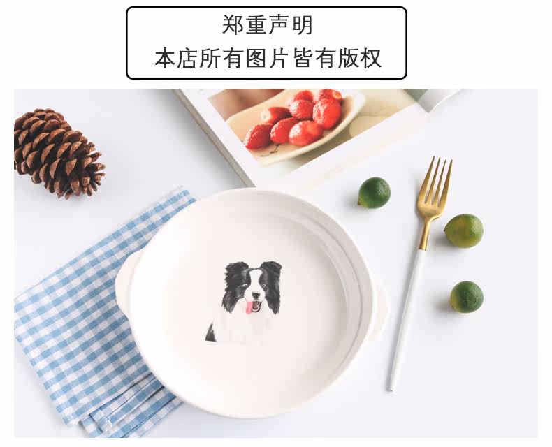 新边牧芝士焗饭盘家用烘培餐具陶瓷烤盘圆形创意双耳西餐牛排盘子