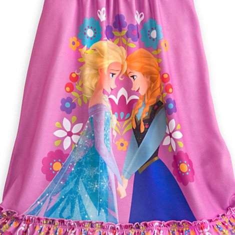Arendelle's adoring sisters come face to face on this Anna and Elsa Nightshirt for Girls. Your young Frozen fan can dream of a winter wonderland filled with icy landscapes as she's wrapped in the warm comfort of this sleepwear. Anna and Elsa screen art Flutter sleeves Smocking detail at neck Ruffled hem Polyester Imported New with tagsFeature