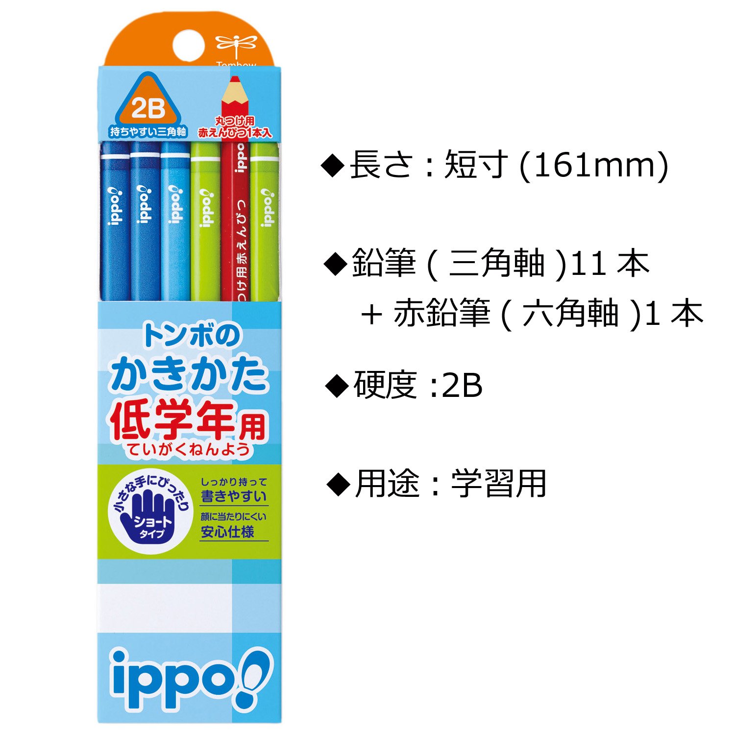 Tombow ippo! Lower grades for writing pencil 2B triangle axis MP-SEPM03-2B plain M03 12 pieces