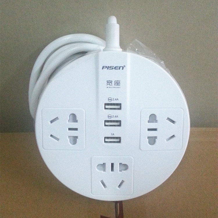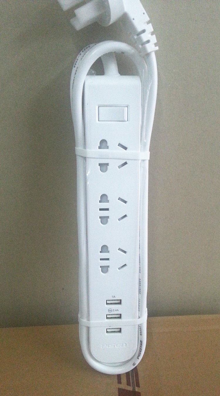 方形 4国标插孔+4USB口插线板: