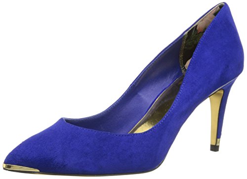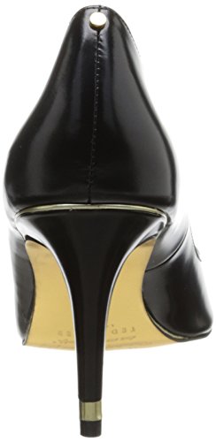 Classic pointed-toe pump with subtle metallic insets at toe and heel