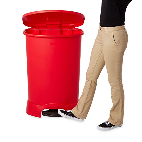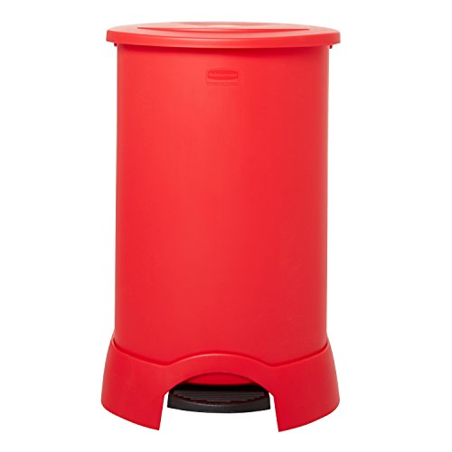 Rubbermaid Commercial 614700RD Step-On Container, Oval, Polyethylene, 30 Gallon, Red