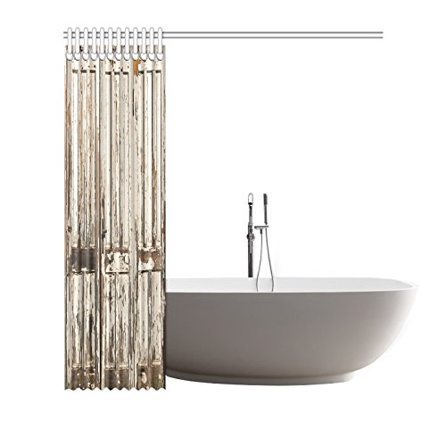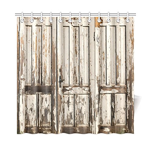 InterestPrint Old Vintage Wooden Door with White Paint Garage American Style Decorations for Bathroom Print Vintage Rustic Theme Decor Bathroom Shower Curtain, 72 X 72 Inches